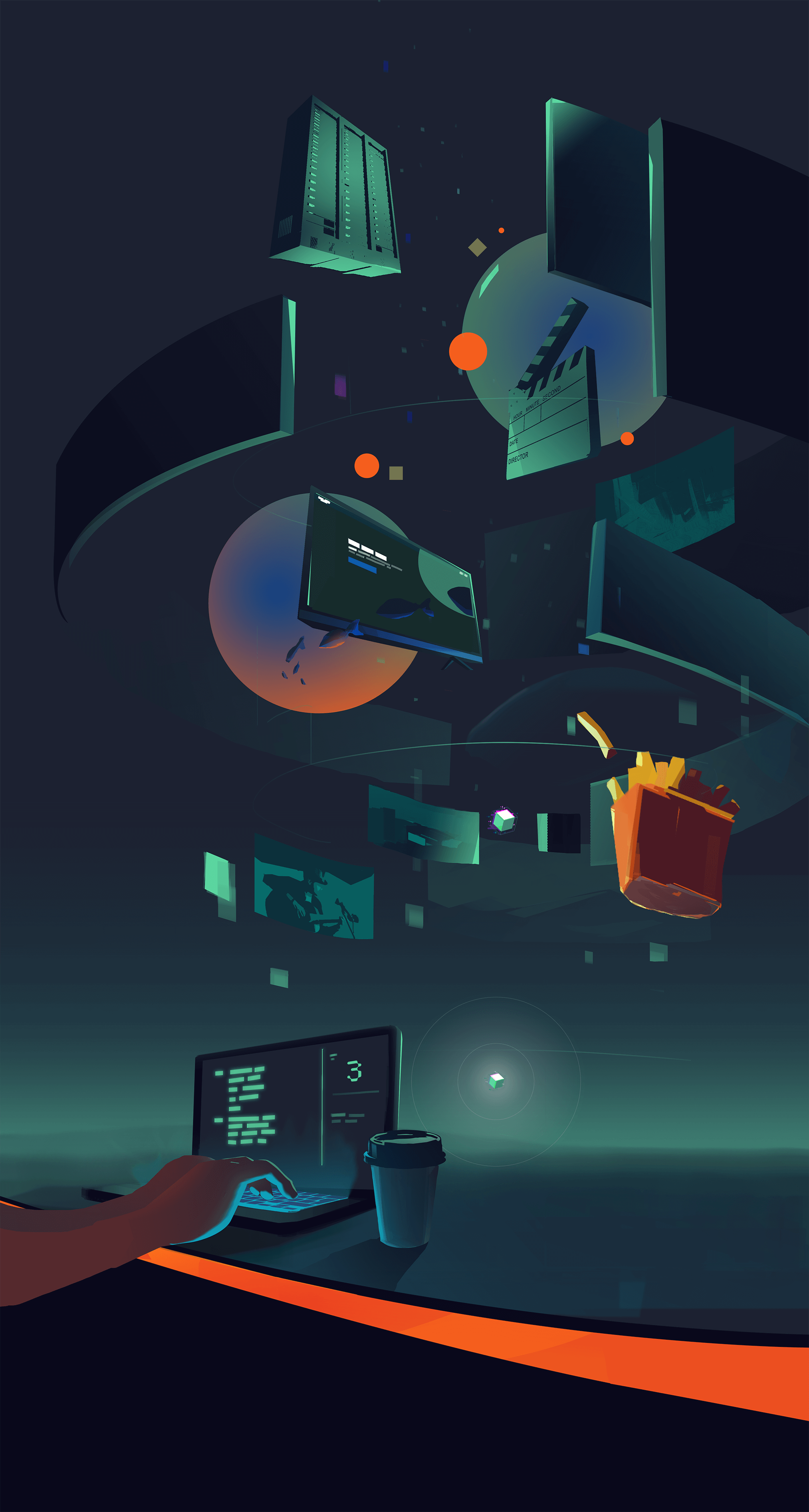 Backgrounds are the most important element in the video. It's creating an exceptional, modern and tech approach. We tried to introduce viewer with our vision of an Amazon Tech world.