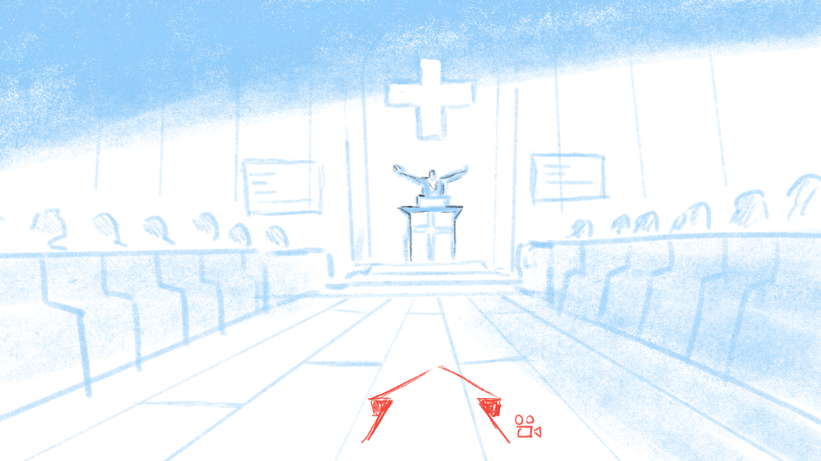 During the storyboarding process, we focused on showing the dramatic story of our characters using simple yet strong visuals.