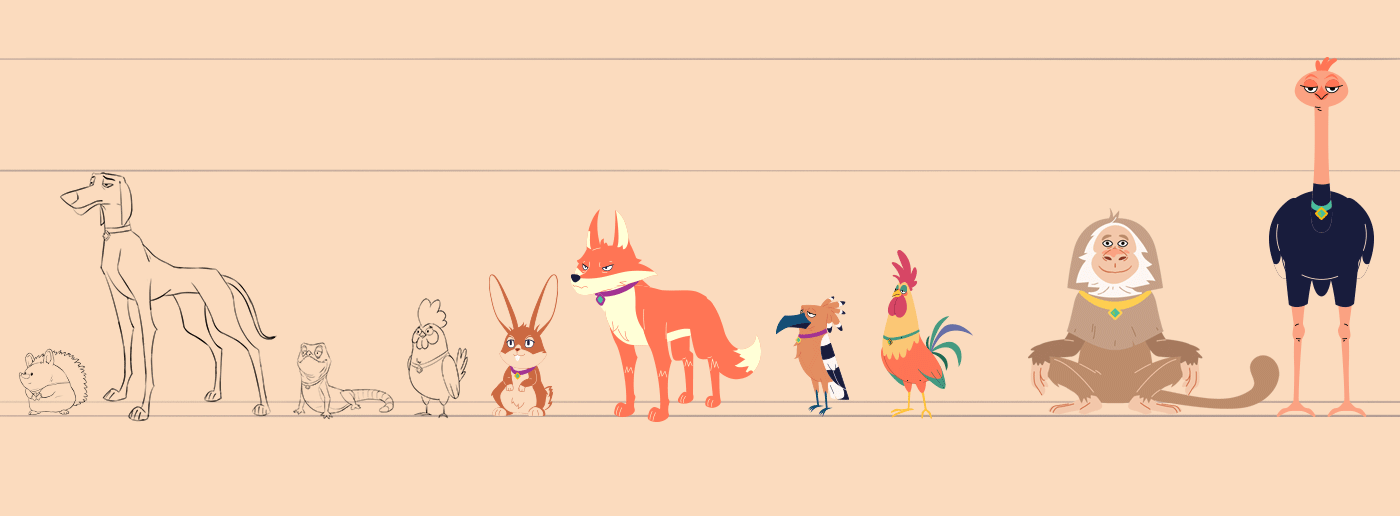 The client provided initial sketches for the diverse cast of animals - ten unique characters, each with its own personality and charm. We took these rough concepts and developed full illustrations that highlight the individuality of every creature.