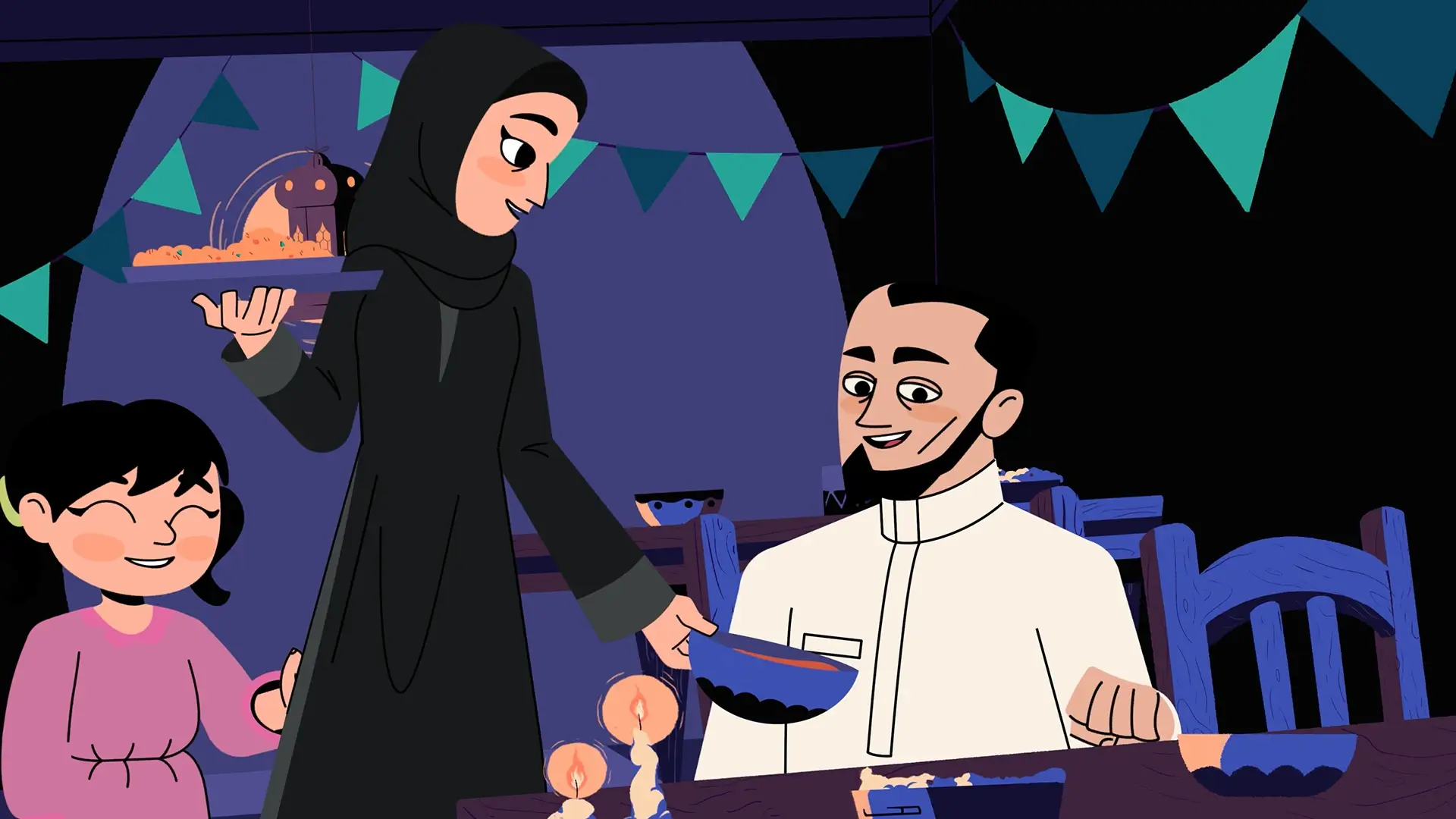 We focused on turning storyboards and sketches into rich, cinematic visuals. With much of the story set at night, lighting became key - we used contrast, glow, and shadows to create colorful, atmospheric scenes that added emotional depth and visual warmth.